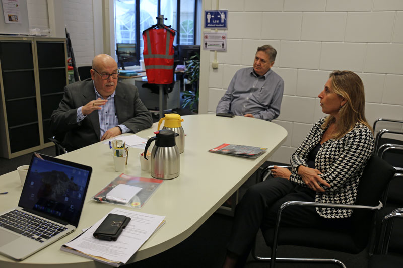 Den Haag Werkt directeur Marieke Stam ontvangt Martin van der Leden, directeur van Beta B.V. in Rijswijk, aan de Kerketuinenweg 24. Beta B.V. produceert electro-mechanische druk– en temperatuurschakelaars voor industriële toepassingen op de internationale markt. Vier mensen met een arbeidsbeperking hebben er intern bij Den Haag Werkt een duurzame baan in gevonden.